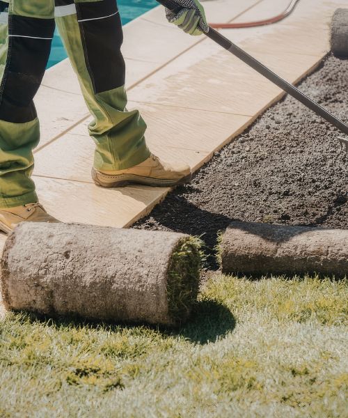Professional lawn installation using high-quality sod or seed for a lush, green finish.